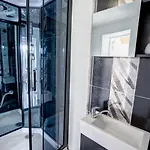 Επιπλέον, έχει μπανιέρα σπα, ξεχωριστή τουαλέτα και ντους.